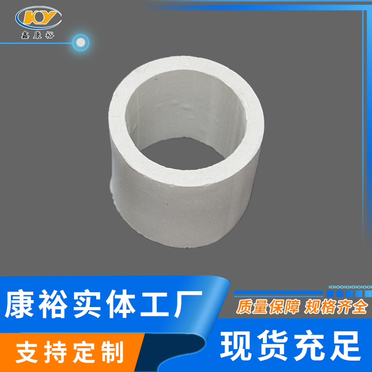 陶瓷拉西環(huán)是較早開發(fā)的一種散堆填料。陶瓷拉西環(huán)的形狀簡單,其高度與直徑尺寸相等。大尺寸的拉西環(huán)(100MM以上)一般采用整砌方式規(guī)則填充,75MM尺寸以下的拉西環(huán)一般采用亂堆方式裝填。