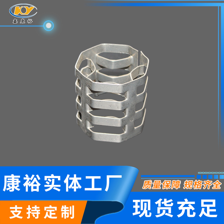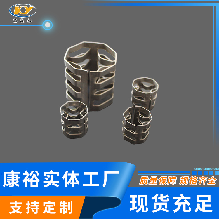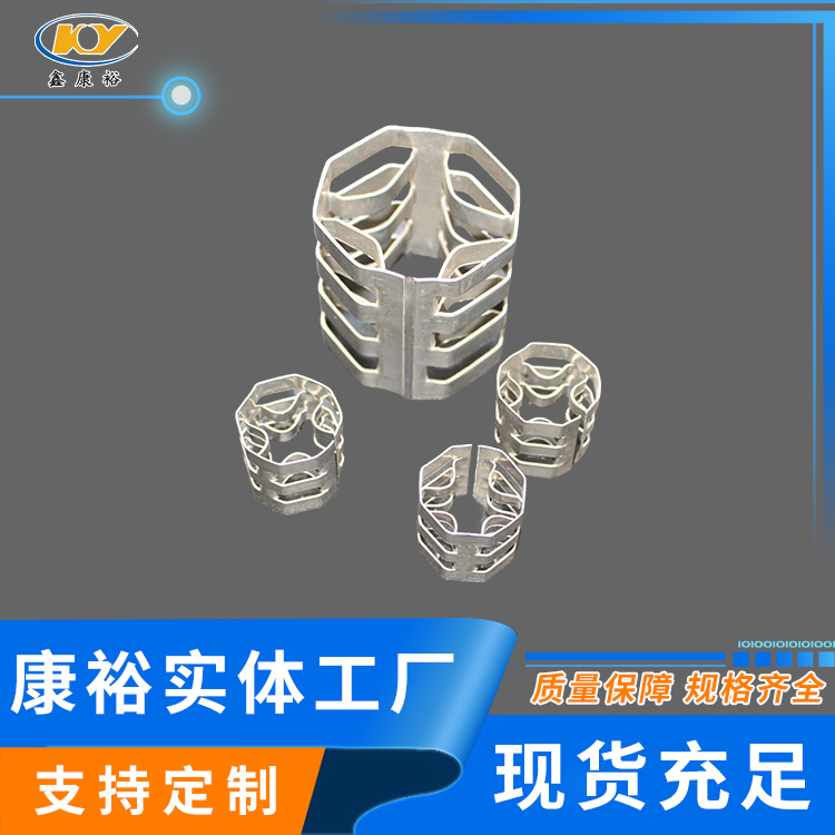 康裕金屬八四內(nèi)弧環(huán)類似花環(huán)開關(guān)的金屬填料,也稱麥勒環(huán)填料。它的特點是環(huán)壁開敞面積大,所以具有通量大、阻力小和傳質(zhì)效率高等特點。